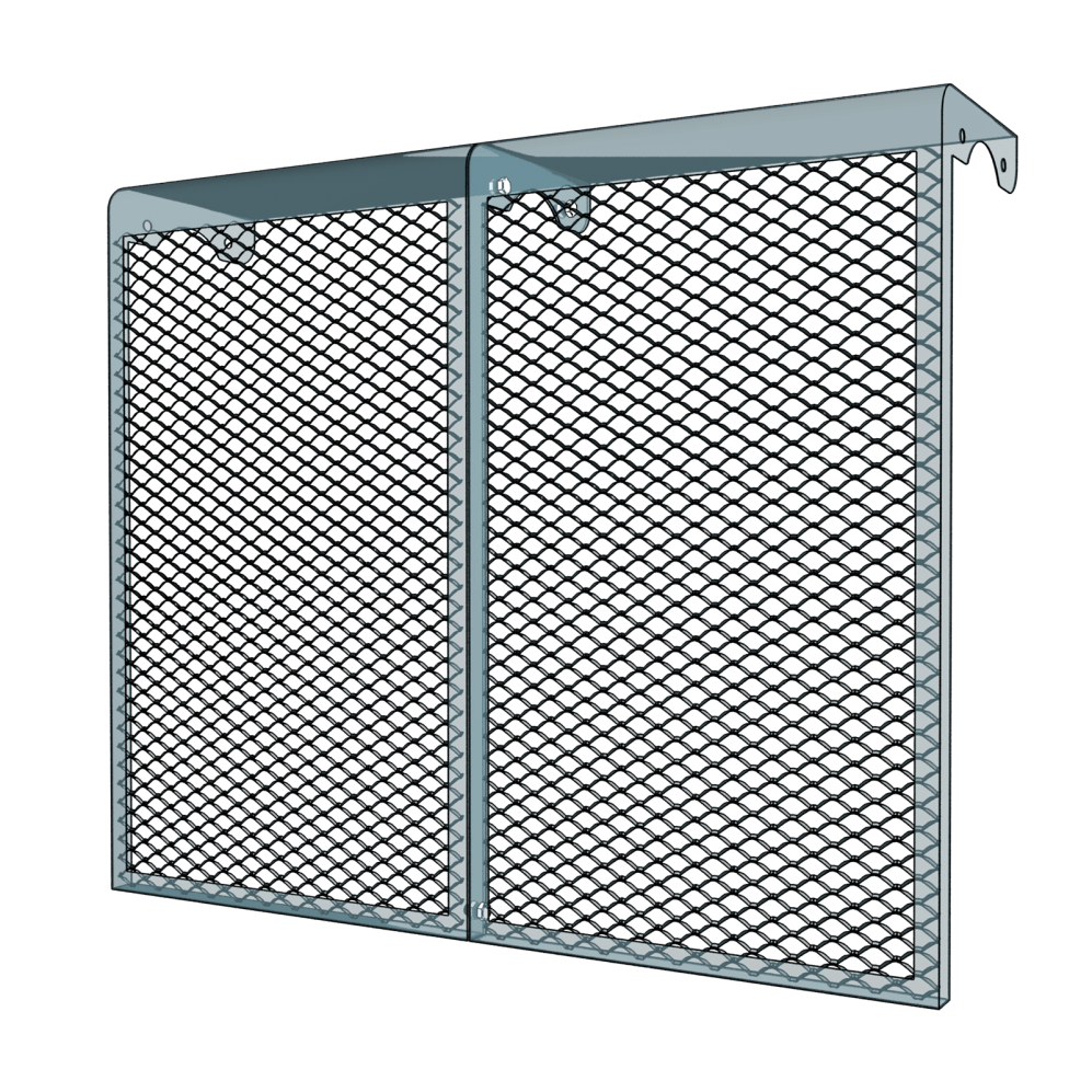 Экраны изготовлены из стали толщиной 0,7мм с наполнением цельнометаллической просечно-вытяжной сеткой (ЦПВС) с размером ячейки 13х25х3мм. Соединение элементов экранов осуществляется при помощи надёжной точечной сварки. Покраска экранов осуществляется нанесением порошковой полимерной эмали, обладающей устойчивым глянцем и высокими эксплуатационными характеристиками.